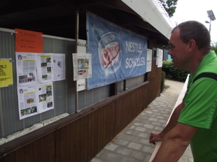 Erste Aushänge von Zeitungsartikeln. Und was findet sich da neben Lübecker Nachrichten und Segeberger Zeitung? 2 Ausgaben einer Minigolf-Zeitung, die DMV-Pressemann Heiner Sprengkamp in Nachtarbeit speziell für die DM in Trappenkamp erstellt. Wir liefern Fotos, Heiner bastelt die Zeitung. Klasse und danke, lieber Heiner für diesen tollen Service!!!