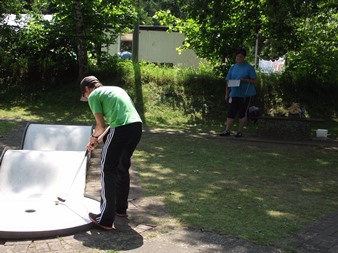 Die Spannung steigt, auch für die zuschauenden, weil ausgeschiedenen Minigolfer ... Halbfinale steht bevor ... Damen: Antje Kalkbrenner-Jasmin Astrid Uhl und Nicole Warnecke-Sabrina Lemke