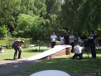 Anspannung unmittelbar vorm Beginn. Das Wetter ist klasse, mehrere Fernsehteams werden heute auflaufen. Minigolfherz, was begehrst Du mehr?