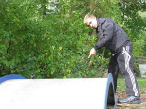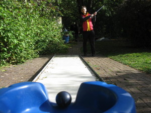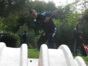 Kuller Dir einen an den Bodenwellen. Patrick Menzel (Salzgitter, 95) macht´s mit der Glaskugel, was bei der naßkalten Witterung ein gewisses Risiko darstellt. Hier ist es gut gegangen. |